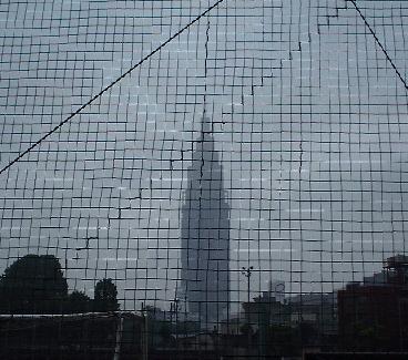 ここはNY?? 新宿御苑の西にある都立新宿高校の校庭から撮ったので見にくいのですが、このビルはとある通信会社の新ビルです。 こーんなでっかい(高層ビル街にも負けてないのよ!)ビルが建てられるくらい景気いいのね〜。○○○さん(-_-;) |