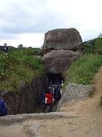有名な石舞台古墳は裏手から古墳内に入ることができるようになっているんです。といっても中は石棺などはありませんけどね。広さは人が20人ほど入ることができるくらい広いのです。さすが蘇我馬子の墓だろうといわれているだけあって規模は大きいです。当時は岩の上には土が盛ってあっていたといわれています。千年の間にすっかり土はなくなっちゃいましたようですね。ちなみに岩の上に昇ることはできません。念のため。(誰もそんなことしないか…)