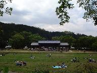 石舞台古墳の隣は石舞台公園という憩いの場となっていました。(数年前はなかったぞっ!)ちょうどお昼時でしたので家族連れの人たちがお弁当を広げていました。古墳入り口前に割と大きい売店がありますからそこでお弁当買って食べている人もいたようですし。真ん中の建物は宮殿の入口のような形をしたものなんですが、何でこのような建物にしたかちょっと???。宮跡でもないのにねぇ…。