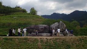 石舞台古墳の側面です。人と比べると古墳の大きさがよくわかると思います。本当に大きいんですから。