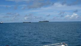 青い海に浮かぶ黒い船(左側の黒い物体です)、これなんだと思いますか?
