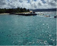 サイパン島の桟橋から船で約15分で着くマニャガハ島の桟橋です。1周30分ほどで回れるこの島は、サイパンの海水浴スポットとして昔からにぎやかでした。