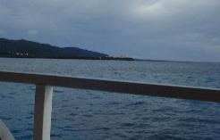 サイパン島からクルージングへでる船の中から、ガラパン地区を見た写真です。とってもちっちゃくて見え辛いのですが正面に見える少し黄色っぽい建物が地区で一番高い建物のハファダイホテルです。このガラパン地区にはあとハイアットホテルと第一ホテルがあります。これだと天気がいまいちそうに見えますでしょ?