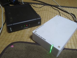 もう2月になってしまった…。最近PC操作をすると何故か反応が鈍い。特にNAS(NetworkAttachedStrage)に保管したデータを覗こうとしたり、NAS内でファイル移動しようとすると、全く動かなくなったりする。HamLogや日記等のデータもNAS内に有り、読み出したり書き込んだりする時、ドライブを見つけられなくなったりしていた。無線ルータのUSBポートにHDDをぶら下げた簡易NASのため、てっきり無線ルータがNGと思い込み、電源再投入で凌いでいたつもりだった。しかし全くのお門違いだった。NASのHDD(2台共)が死にかけていたのだ。連日の不具合にはホトホト疲れ、結局本日5日、会社の帰りにPCショップを尋ねRAID+MIRROR対応の2TBのNASを買ってきた。何時ものことだが良くできていて、早くからこれにすりゃ良かったと内心呟いた。10年近く前より、現役引退NOTE-PCにFreeNASを組み込んでNASを構築してきたが、トラブル対策やそれに掛かる時間や労力を考えると限界。市販品が出回り、もう買う時代だなぁと認識。無線ルータのUSBポートに依存する必要が無くなり、そのルータも撤去(無線はNTTルータPR-401Mで対応)となった。写真は壊れる前にバックアップするHDD。オンマウスは新調したNAS…もう市販品の時代だ。 |