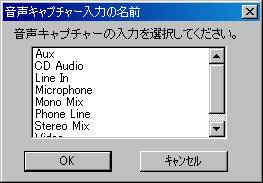 音声キャプチャーボードの入力を決めます。通常は「ライン入力」を選択してください。