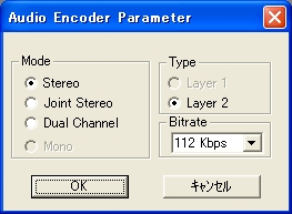 MPEG1 Layer2 ビットレート 32〜384Kbps サンプリング 44.1 |