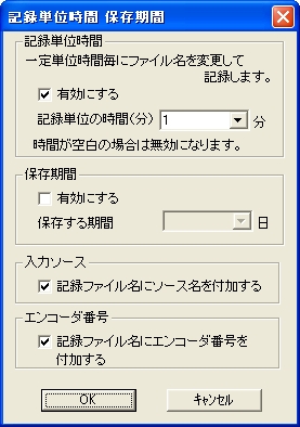記録単位:一定時間ごとにファイル名を変えて連続記録するときにその時間を設定します。ファイル名はカレンダーとなります。