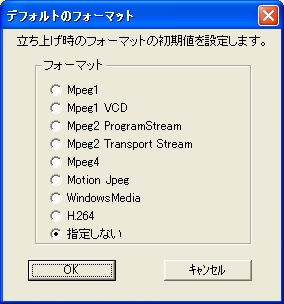 「指定しない」を選択の場合は、「Mpeg4」で立ち上がります。
