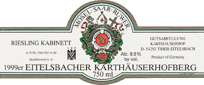 1999 EITELSBACHER KARTHAUSERHOFBERG RIESLING KABINETT/KARTHAUSERHOF