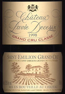 | ちょっとお勉強はこの位にして、スーパー・サンテミリオンの登場です。 シャトー・パヴィ・ドゥセス1998年です。 現在このワインの所有者はジェラール・ペルスという人物で、元々スーパーを経営していたのですが、 近年、シャトーを買い占め最先端技術のもとでワイン造りがなされています。 パーカー好みのワインであり、彼の造るワインは軒並みに高得点が付けられています。 鉋で材木を削った時のような新樽の香と干しプラムの香。濃厚な味わい。 確かに最先端技術の味です。 |