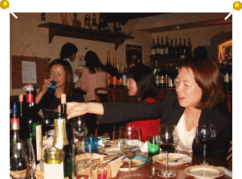 | 今回のワイン会はアット・ホームな雰囲気が素敵なワイン・バー、トムギャルソンで行われました。 冨尾店長のお勧めワインを中心に、+メンバーの方の差し入れと共に深まり行く秋に乾杯!!です。 |