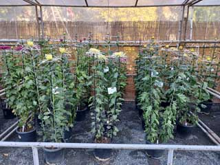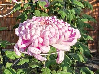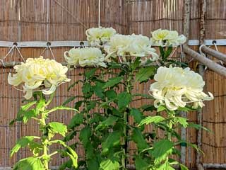 境内は湯島天神に比べて遙かに大きく参道を入り、太鼓橋を渡って本殿に向かうが、展示物は見当たらず、展示は終了してしまったのかと一瞬思ったのですが、本殿前に来て右手を見てやっと展示会場を発見することが出来ました。「三郷菊花会」「江東菊花会」「やちよ会」の三つの会がそれぞれ菊の種類及び展示方法も異なった方法で展示されていました。会場中央にタワー状の菊飾りが有り、本殿越しに聳え立つ、スカイツリーと背比べをしているのが印象的でした。突然、女性より「太陽の周りにまーるく虹が出てます。」と声を掛けられ、太陽に向けてスマホを構えたのですが、強い太陽の光で全く画面が見えず、シャッターを押しただけでしたが、偶然にも虹が上手く撮れていました。(令和4年11月17日)