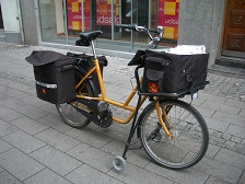 郵便局スタッフ。それぞれいろんな形の自転車で、ユニフォームのデザインも様々。