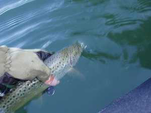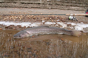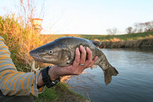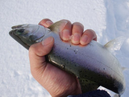 12月30日(水) ハッピバースデイ ボ〜ク〜♪今日は私の39回目の誕生日だ。クリスマスも誕生日も祝う習慣のない我が家なので、まつさんとワカサギ釣りに行った。 まつさんのテントは前よりも窮屈に感じたし、彼のお腹は前より巨大に育ったように感じたけれど、気のせいかな? 最初にアメマスが釣れ、その次にサクラマスを釣った。 ワカサギはあまり釣れなかったが、料金の回収に来た人が、「みんな釣れなくて帰ったよ。さっきの人は12匹だ」というので、それよりましだ。 まつさんの釣ったワカサギと合わせて70尾ほど。まつさんが釣った分もくれたしサイズもまあまあだったので、今日食べる分としては十分だ。サクラマスも3匹もいる。 ![]() ![]() ![]() ![]() 帰りがけに妻からメールが入った 「具合が悪いから、なるべく早く帰ってきて」 とのこと。 帰ると、妻はぐったりと寝込んでいた。 仕方がないので、ケーキ用の生クリームとイチゴを娘と買いに行き、唐揚げやら何やら夕飯を急いで作り、生クリームを泡立ててホットケーキに塗り、「パパ、誕生日おめでとう」と言われ、娘たちを風呂に入れ、寝かしつけたら、23時を回っていた。狭いテントでのワカサギ釣りで腰が痛くなっているところに、帰ってからずっと立ちっぱなしで料理とケーキ作りと、洗いものをしたのでくたくただ。 ![]() ![]() ケーキは、私を驚かせようと、私の留守中に妻と娘とで作るはずだったそうだ。 娘のサプライズさせたい気持ちを踏みにじらないよう、常に、「何ができるのかな?」と、とぼけた顔で、生クリームを買いに行ったり、泡立てやらデコレーションを手伝ってやらねばならないのは、勘弁してほしい予想外の誕生日プレゼントであった。 さらに言うと、台所で飯を食べつつ洗いものを終わらせた後に、ケーキ作りをし、その後生クリームでべとべとになったボウルやら何やらをもう一度洗わねばならず、「やってられるかあっ!ケーキなど食いたくねえよ、明日にしろ!明日に!」と言いたい気持ち120パーセントだったのだけれど、妻は力なく「ごめんね」などと言っているし、娘は「どう?どう?」と目をきらきらさせているし、さすがの私も今回ばかりは、そこまで鬼畜にはなれず。「美味しかったよ、ありがとう!」などと心にもないことを言ったりしたのであった。 まあでも、幸せな味だったよ。 ![]() これは、余りで作った小さいケーキ。大きいほうはなんと5段重ね!そんなに食えるか! 12月5日(土) 寒かったあ。金曜日に飲み会があった。二日酔いでへろへろと釣り場に向かった。 11時前に釣り場に着き釣りを始めたが、ヒドイ寒さだった。 12時をまわっても、数投でガイドが凍りつき、ラインもすぐにバリバリになってしまう。 寒さで固くなったラインは、滑りが悪くなるので小さな結び目ができやすくなる。 この日も、開始からしばらくして結び目ができてしまったのだが、そのまま放っておいてキャストを続けた。 ガイドの穴が凍りで詰まってくると、できてしまったラインの結び目がひっかかってキャストがままならない。何投かごとにガイドの氷をとりつつ釣りを続けると、ほどなく50cmほどの魚が釣れた。 無釣果も覚悟した今日の釣りだったから、この一尾は嬉しかった。 ![]() 寒さのせいか、ポイントのせいかわからないけれど、魚の反応は極めて少なく、今日はさっきの魚だけで終わりかなと思った矢先、下流に投げた22gの蛍光黄色のスプーンにドンという重いアタリがあった。 瞬間アワせを入れ、「根掛りかな?」と思ったのが、きっと1秒以内、「魚だ!でかい!」と思ったのも1秒以内、「鮭かもしれない、いや、アメマスだ!」と思ったのも1秒以内だったと思う。少し強引にロッドをあおった時に上がった水しぶきは、間違いなくトロフィーサイズだったけれど、プッっという糸の切れる感触とともに、その魚は消えてしまった。スイベルの結び目で切れたかなと巻き取ってみると、切れた場所は、面倒くさくて放っておいたライン途中の小さな結び目であった。 その後、65cmのアメマスを1尾釣ったけれど、ばらしたあいつはもったいなかったなあ。 ![]() この魚が出たところには、何匹も溜まっていたようだ。 結局この日釣りあげた魚は2尾。あたり数回とばらしが1回、追いが2回。終日ガイドの氷と戦かう寒さの中だから、まあ釣れただけでも良しとしなければいけないね。 随分長く流域を歩いたけれど、一人の釣り人にも出会わなかった。結局釣りを終えるまで若干頭痛がしていたが、それが二日酔いのせいなのか、寒さのせいなのかはわからない。いずれにせよ、広い河川を独り占めできた今日の釣りの満足度は高い。 ばらした魚をとれていればともおもうけれど、まあ、それは釣り人なら誰でも思うこと。 夜は、今日で6週にわたってこちらに来ているというHiroshiさんと呑んだ。 いつも楽しいが、今回も格別に楽しかった。 Hiroshiさんと呑むのも、今年は最後だろう。来週は本州に旅行に行くと言っていた。 私