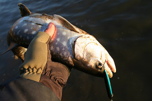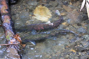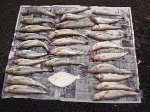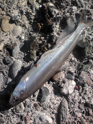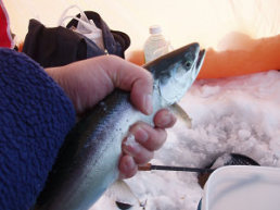 12月30日(水) ハッピバースデイ ボ〜ク〜♪今日は私の39回目の誕生日だ。クリスマスも誕生日も祝う習慣のない我が家なので、まつさんとワカサギ釣りに行った。 まつさんのテントは前よりも窮屈に感じたし、彼のお腹は前より巨大に育ったように感じたけれど、気のせいかな? 最初にアメマスが釣れ、その次にサクラマスを釣った。 ワカサギはあまり釣れなかったが、料金の回収に来た人が、「みんな釣れなくて帰ったよ。さっきの人は12匹だ」というので、それよりましだ。 まつさんの釣ったワカサギと合わせて70尾ほど。まつさんが釣った分もくれたしサイズもまあまあだったので、今日食べる分としては十分だ。サクラマスも3匹もいる。 ![]() ![]() ![]() ![]() 帰りがけに妻からメールが入った 「具合が悪いから、なるべく早く帰ってきて」 とのこと。 帰ると、妻はぐったりと寝込んでいた。 仕方がないので、ケーキ用の生クリームとイチゴを娘と買いに行き、唐揚げやら何やら夕飯を急いで作り、生クリームを泡立ててホットケーキに塗り、「パパ、誕生日おめでとう」と言われ、娘たちを風呂に入れ、寝かしつけたら、23時を回っていた。狭いテントでのワカサギ釣りで腰が痛くなっているところに、帰ってからずっと立ちっぱなしで料理とケーキ作りと、洗いものをしたのでくたくただ。 ![]() ![]() ケーキは、私を驚かせようと、私の留守中に妻と娘とで作るはずだったそうだ。 娘のサプライズさせたい気持ちを踏みにじらないよう、常に、「何ができるのかな?」と、とぼけた顔で、生クリームを買いに行ったり、泡立てやらデコレーションを手伝ってやらねばならないのは、勘弁してほしい予想外の誕生日プレゼントであった。 さらに言うと、台所で飯を食べつつ洗いものを終わらせた後に、ケーキ作りをし、その後生クリームでべとべとになったボウルやら何やらをもう一度洗わねばならず、「やってられるかあっ!ケーキなど食いたくねえよ、明日にしろ!明日に!」と言いたい気持ち120パーセントだったのだけれど、妻は力なく「ごめんね」などと言っているし、娘は「どう?どう?」と目をきらきらさせているし、さすがの私も今回ばかりは、そこまで鬼畜にはなれず。「美味しかったよ、ありがとう!」などと心にもないことを言ったりしたのであった。 まあでも、幸せな味だったよ。 ![]() これは、余りで作った小さいケーキ。大きいほうはなんと5段重ね!そんなに食えるか! 12月5日(土) 寒かったあ。金曜日に飲み会があった。二日酔いでへろへろと釣り場に向かった。 11時前に釣り場に着き釣りを始めたが、ヒドイ寒さだった。 12時をまわっても、数投でガイドが凍りつき、ラインもすぐにバリバリになってしまう。 寒さで固くなったラインは、滑りが悪くなるので小さな結び目ができやすくなる。 この日も、開始からしばらくして結び目ができてしまったのだが、そのまま放っておいてキャストを続けた。 ガイドの穴が凍りで詰まってくると、できてしまったラインの結び目がひっかかってキャストがままならない。何投かごとにガイドの氷をとりつつ釣りを続けると、ほどなく50cmほどの魚が釣れた。 無釣果も覚悟した今日の釣りだったから、この一尾は嬉しかった。 ![]() 寒さのせいか、ポイントのせいかわからないけれど、魚の反応は極めて少なく、今日はさっきの魚だけで終わりかなと思った矢先、下流に投げた22gの蛍光黄色のスプーンにドンという重いアタリがあった。 瞬間アワせを入れ、「根掛りかな?」と思ったのが、きっと1秒以内、「魚だ!でかい!」と思ったのも1秒以内、「鮭かもしれない、いや、アメマスだ!」と思ったのも1秒以内だったと思う。少し強引にロッドをあおった時に上がった水しぶきは、間違いなくトロフィーサイズだったけれど、プッっという糸の切れる感触とともに、その魚は消えてしまった。スイベルの結び目で切れたかなと巻き取ってみると、切れた場所は、面倒くさくて放っておいたライン途中の小さな結び目であった。 その後、65cmのアメマスを1尾釣ったけれど、ばらしたあいつはもったいなかったなあ。 ![]() この魚が出たところには、何匹も溜まっていたようだ。 結局この日釣りあげた魚は2尾。あたり数回とばらしが1回、追いが2回。終日ガイドの氷と戦かう寒さの中だから、まあ釣れただけでも良しとしなければいけないね。 随分長く流域を歩いたけれど、一人の釣り人にも出会わなかった。結局釣りを終えるまで若干頭痛がしていたが、それが二日酔いのせいなのか、寒さのせいなのかはわからない。いずれにせよ、広い河川を独り占めできた今日の釣りの満足度は高い。 ばらした魚をとれていればともおもうけれど、まあ、それは釣り人なら誰でも思うこと。 夜は、今日で6週にわたってこちらに来ているというHiroshiさんと呑んだ。 いつも楽しいが、今回も格別に楽しかった。 Hiroshiさんと呑むのも、今年は最後だろう。来週は本州に旅行に行くと言っていた。 私
