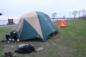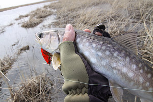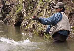 6月7日(月) まつさんと釣りひさーしぶりに、まつさんと釣りに行った。7時に待ち合わせだったが、早く起きたので、ちょっと遠回りして、鳥やらリスやらを見てまわってから、まつさんの家に行った。 ![]() なんか、へんな恰好だ。 予定の湖は、濁りが強く釣りにならなかった。 かろうじて、流れ込みの小川でニジマスとイワナを釣っただけだ。ニジマスは小さかったけれど、綺麗な魚だった。 ![]() 今日はカメラバッグを忘れたので携帯写真だ。 昼飯を食べてから、以前よく通った川に新調したウェーダーの履き心地を試しに行った。 初めて履くタイプのウェーダーだが、まあ合格かな。ピッタリとしたストッキングウェーダーというものだ。 ジャージを履いた上からは履けないので、裸足にパンツいっちょで履いたが、ウェーダーの中に何か履くものなのかそうでないのかがわからない。 余り長い時間じゃなかったから良いけれど、長時間なら靴ずれは必至だよな。 ![]() ![]() ![]() 4匹のニジと1匹のオショロコマを釣って、5時ごろ釣りを止めた。 水の色が良かったので、大物も少しだけ期待したけれど、30cmをちょっと超える魚が最大だった。 でも、元気いっぱいで良く引く魚だったから、まあ、満足だ。 ![]() オショロコマは綺麗だなあ。 とにかく天気が良かったし、しばらくぶりのまつさんとの釣りだったので楽しい一日でした。 5月23日(日) 幸せの青い鳥前回のイトウツアーから、寝ても覚めてもイトウさんのことを考えている。けれど、道北は遠く、7月後半までは、私は娘の運動会やら、娘の学校の環境整備作業やら、何やらで、泊りがけで釣りをしに行くことは不可能なことがほぼ確定的だ。 だから、ちょっと青い鳥でも探して、運気をあげておこうと、鳥見にくりだした。 ゆっくり起きて朝飯を食い、まずは十勝川のカワセミポイントに向かった。 早朝から出たかったが、朝4時には雨が降っていたので、遅い出発になってしまった。 空は重い雲に覆われ、川は濁って増水していた。 それでも、1羽のカワセミが運よく羽を休めていた。 チャンスと車のトランクから撮影機材を出している時に、カワセミはどこかへ飛んで行ってしまい、その後1時間ほどその場所で粘ってみたが、残念ながらそれっきりだった。 その後は、いつも夏鳥を見に行く山へ行ってみた。 サクラの名所だが、先週あたりが見ごろだったのだろう、山の下の方のサクラはほぼ終わっていた。サクラにとまる鳥を撮りたい気持ちもないわけではないが、満開だったとしたら、こんな時間には花見の人でにぎわい撮影どころではないはずなので、まあ、良い。 キビタキやイカルなどのいつものメンバーが相手をしてくれたが、肝心の青い奴には出会えずに、午後になった。 ![]() あきらめて、帰ろうとした時に、オオルリを見つけた。 さて、幸せはいつ訪れるかな。 ![]() 5月15、16日(土日) 道北イトウツアー パート1今年はサイト開設10周年の年だ。そして、キンゾーさんと初めて釣りに行ったのも、10年前の秋だった。そんなわけで、キンゾーさんと今年は、ちょっと記念になるような良い釣りをしようと春先だったか去年の冬だったかに相談していた。 その、記念釣行第一弾は、道北イトウツアーだ。 キンゾーさんにはいつもながらではあるが、お世話になった。 行きも帰りも全て運転してもらった。 道中は殆ど釣りの話であったが、長い道のりもその会話で随分短く感じた。 ![]() ![]() 水中からふいに浮上し、ルアーに襲いかかった魚が頭から離れない。 金曜日の夜に出発し、土曜日の朝に現地に着いた。 そのまま殆ど一睡もせずに、竿を出す。 川は多少の濁りがあったが、十分に釣りになる水の色であった。 朝一、ボイルなどの魚の気配は多少感じたが、アタリがあることはなく、その場所を後にし、少し色々な川を橋の上から見て回った。 眠気が強かったので、車の中でちょっとの時間仮眠をした後、川に出る。 自分の持っているルアーの中では最大のミノーを結び、川に投げた一投目にイトウが濁った流れから浮上して、大きな口を開けて襲いかかってきた。 アワせた手には、コツンという感触だけが伝わり結局ヒットには持ち込めず、この日は、そのバイトだけで終わってしまった。 70cmは超えているように見えたその魚は、フックにラインがからまり、正常に泳いでいないミノーにバイトしてきたので、「からまりメソッドだな」などと心の中で呟きつつ、時折、わざとにラインを絡ませて投げてみたりもしたが、その後はただ一回の追いもないまま、1日目の釣りは終了した。 ![]() 大きいテントはキンゾーさん、後ろの赤いのが私の。 ![]() 夜は、いつもの。 夜、テントの中でビールを飲んでいると、キンゾーさんのお知り合いの釣り弁さんから電話があった。 「明日、ご一緒しましょう。1本ずつくらいは固いでしょう」 との電話であった。 翌、日曜日。11時までに2カ所を案内してもらい、キンゾーさんと、釣り弁さんにそれぞれ、1尾