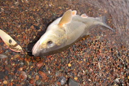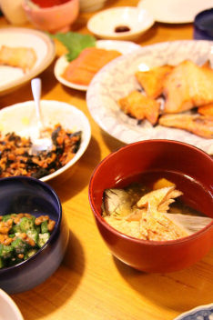 6月27日(日) サクラマスを釣りに![]() 26日は、月食だった。 よい天気になりそうな、空だったので、早めに寝て、翌朝釣りにでかけた。 サクラマスを1,2匹調達しようと、道東の海岸に行った。 5時ごろに釣り場ついただろうか、偶然shinyaさんにお会いした。 ![]() 海は穏やかで、魚の反応もあったので、朝方は期待をした。 小さいアメマスが何匹か釣れ、まわりでは、サクラマスがあがったのを見た。 今度は自分の番かなあなどと思っていると、いい当たりがあり、直後に針が外れた。サクラじゃないかと思う。しかし、その後パタリとアタリがとまり、小さいアメマスも釣れなくなってしまった。 小さな流れ込みに着いたころ、Hiroshiさんがやってきた。 まだ、4,5投しかしていないんですよと言って近くで釣りを始めたのだが、早速いい感じでロッドが曲がっている。 あがったのは、50cmを超えたくらいのサクラマスだった。 「まあきちさん、欲しいなら、どうぞ」 とおっしゃるので、遠慮なくもらった。 自分で釣ればいいのだが、まあ、何匹あっても困る魚じゃないしね。 それから、少しして、またもやHiroshiさんがサクラマスを追加した。 「まあきちさん、いらないのなら、リリースするけど」 とおっしゃるので、 「いやいや、いります」 と、節操無くもらった。 まあ、何匹あっても困る魚じゃないしね。 それからすぐ、shinyaさんもHiroshiさんも釣り場を後にした。 私も、朝だけちょっとやろうと思っていただけだし、魚もあるので、帰ろうかなあと思った矢先に、波打ち際まで巻いてきたミノーにサクラマスが掛った。 「ああ、こんなところで掛るとバラすんだよなあ」 と思ったら、やっぱりばれた。 帰ろうかなあと思ったら、魚が跳ねたり、アタリがあるものだから、結局昼ごろまで粘ってしまった。 けれど、帰宅を決意したのは、こいつのお陰。 ![]() 「もう、かえりなさい、ぐーぃ」と鳴いた。 車止めの前で餌釣りのおじさんに、2匹は立派だと褒められた。特に返事はせず、曖昧な笑顔で答えておいた。いいんだよ、それで。目的は達成したんだから。 Hiroshiさんに頂いたサクラマスは、焼き物、ルイベ、汁物、フリカケという定番料理になって、我が家の人々の胃袋におさまった。今回の1番は、中骨の周りの身で作ったフリカケだった。 そのフリカケご飯に、あら汁の汁をかけたお茶(?)漬けは、文句なしの美味さだ。 Hiroshiさん、どうもありがとうございました。娘も妻も大変喜んでおりました。もちろんボクです。 また、ください。釣れないんで・・・。えーん。 ![]()