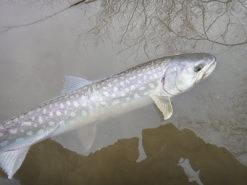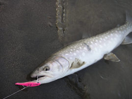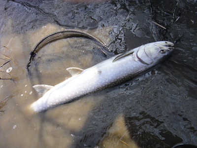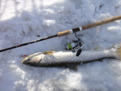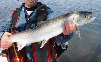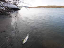 3月24日(日) アメモモ3月22日に始まった年度末飲み会ロード、30日までに全部で5回もある。体は持つのだろうか。先週半ばの暖気で、20日には川が一気に濁った。 週末の釣りは無理かなあと諦めていたのだが、、国土交通省のデーターを見ると、濁りが取れていたので、朝遅く出発し下流域を目指した。 先週釣れたポイントには車が1台だけとまっていた。 川までの雪は締まっており、歩きやすかった。 先行者に状況を聞くと、渋いが70cmと71cmを釣ったという。 先週とは違い渋かったが、大きさは先週よりよかった。 最初のアタリがあるまで30分ぐらいかかったが、その魚が60cmを切るぐらい、次が63cmだった。 ![]() ![]() ![]() ![]() 4本目の魚は、少し抵抗した。 すぐに寄って来たが、最後なかなか浮いてこない。 ズリあげられる岸がないので、慎重に寄せて、ネットに無理やり入れた魚は、77cmあった。 丁度通りかかった釣り人に、写真を撮っていただいた。 最近は単独行が多く、魚との写真があまりないので、嬉しかった。 ![]() ![]() 77cmあった。 9:00から14時までで7本。60オーバー3本と70オーバー1本という釣果は、まあまあだろうか。サイズが出たので良しなのかな。 それにしても、昨年秋に掛けた魚が、どうしても頭から離れない。 77cmでこのくらいのひきでは、80cmを越えても、あの魚の引きはしないだろう。 春の下りアメでは参考にはならないけれども。 夕方にはモモンガに会いに行った。 20日に行った時には、17:20にすでに1頭出て来ていた。期待してその時刻より早くから待っていたが、結局出てきたのは、17時38分だった。一気に3頭出て来て、そのうち2頭は、幹や枝でしばらくじっとしていてくれた。日没直後だったので、まだ明るさは残っており、なんとか自然光でかわいい写真を撮ることができた。 アメマスにしろ、モモンガにしろ、今日はなかなかついている1日だった。 ![]() 3月17日(日) 釣れたけれど、最初と最後が良くない。土曜日もこの日も仕事だったのだが、昼過ぎになんとか仕事を止め(終えではない)、釣り場に向かった。あんまりいい天気なのでがまんできなくなって、途中で仕事を放り出して釣りに行っちゃったってわけ。 釣り場に着いたのは15時。この時点でもきっと気温はプラスだったと思う。暖かかった。 どこに入ろうか迷ったけれど、時間もないから、あまり歩かなくて済む場所に車を止めて、川に向かった。 歩きだしてすぐに、雪に脛まで埋まった。と、同時に激痛。 ただのつぼ足だと思って強引に進もうとしたのが悪かった。たまたま側溝(U字溝)があって、そこに足がはまってしまったのだ。脛を思いっきりガリっとしてしまった。痛い・・・。 川に着くと、釣り人が2名いて、すぐに魚をかけていた。 あまり期待をしていなかっただけに、魚がいるのがわかって嬉しい。 準備をして、ミノーを投げ入れると、数投目でヒット。 あがってきたのは50cmほどのアメマス。ミノーをがっぷりと半分飲みこんでいた。 ![]() 最初の魚は、ミノーをがっぷりと喰ってきた。 活性が高いようで、そこそこヒットが続いた。 ミノーでもバイブレーションでも、ジグでもスプーンでも来た。 16時をまわると、少し喰いが落ちたが、短時間で10本の釣果は良い方だろう。 けれど、サイズは不満である。昨年秋に掛けた魚の感触が忘れられないのだ。 ![]() この日の最大は、61cm。 17時過ぎに10本目が釣れた後、アタリが全くなくなったので、これでダメなら帰ろうと、サムライ70を結んで投げたら、2投目でコツっとあたった。あたったと同時にピシッと合わせると、プッと糸が切れた。 最初スイベルでも外れたのかと思ったが、何でもない中途半端なラインの真ん中が切れていた。ラインに傷がついていたのだろうが、なにもサムライに替えた途端に切れなくてもいいのに。替える前に付けていたスプーンは500円以下のモノだったのに・・・。 ![]() ![]() 結構いい釣りだったのに、最後でがっかりだ。 帰りは、行き以上に歩きづらく、行きに痛めた脛に雪があたり痛かった。 スノーシュー、車に積んでいたんだけど、平気かなって横着したのがいけなかった。 帰って脛を見たら、血がにじんで腫れていた。 3月9にち(土) 味噌作りの後、万年さんを案内した午前中に、味噌作り講習会に参加した。上の娘も一緒に行ったが、娘は2年前にも妻の母親と参加しているので、味噌作りに関しては先輩だ。 何かの折に味噌作りに興味があることを義母に言うと、「それなら、今度一緒に行きましょう」ということになり、今回それが実現したのだ。 大豆は音更大袖という品種だそうだ。煮ている最中の大豆をつまみ食いさせてもらったら、そのままでビールのつまみになる美味さだった。私はこれまであまり豆を料理に使って来なかったが、これからは、少し使ってみたいなと思った。できたての豆腐や豆乳を試食させてもらったりしながら、楽しく時間が過ぎた。途中で、作った豆腐を入れた味噌汁(味噌は昨年ここで作られたも