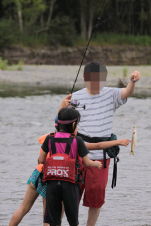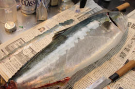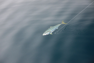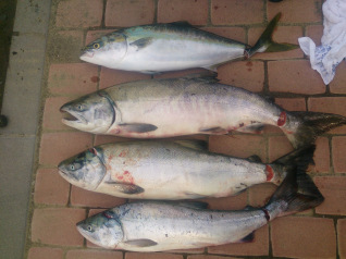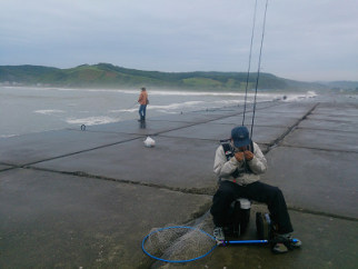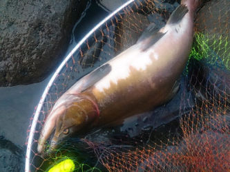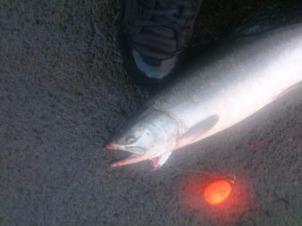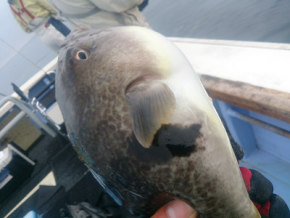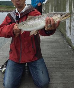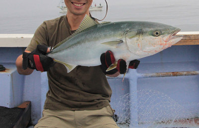 9月20日(日) 2度目のブリジギチャレンジ(兼 道東釣りバカ選手権 団体戦)キンゾーさんが「9月20日にブリジギ行く人〜」って、指を立てた瞬間にその指にとまったボクとシローさんだったのだが、この日(19日夜から20日の朝にかけて)は第二回道東釣りバカ選手権in夜の港ということになっていたのであった。もともとこの連休は、イトウを釣りに行こうと思っていて、釣りバカたちの集いには参加しないと事務局には言っていたのだが、そんなことを言っておいて、「ブリ行く?」との誘いにすぐのる私に、事務局長のみっしーさんはきっと内心呆れていたのだろうが、そんなことは知らない。だって、ねえ。根魚とブリは違うし・・・^_^; で、まあ、ブリをキャンセルするっていうのもね〜という空気が、そこはかとなく漂っているSNS上の会話であったのだが、「じゃあ、港組と船組とのチーム戦ってことで」という誰かの提案で手打ちということになった。どうやって、港の魚とブリとで勝敗をつけるのかは、最後まで曖昧なままであった。 港チームは、みっしーさん、まつさん、あさみさん。 船チームは、キンゾーさん、シローさん、私。ちょうど3対3だ。 ![]() スタート時のこの写真は、何かを暗示しているようにも見える(笑) 4:30出航、その時点の天候は雨だった。 肝心のブリだが、ここのところはあまり釣れていないらしい。 昨日はアキアジが良くかかったというので、それでもいいかなーなんて考えていたら、さっそくアキアジが釣れた。大きいオスだったのだが、タックルがブリ用のタックルなので、すんなりと寄ってくる。 そうそう、今回のタックルも全てキンゾーさんにお借りしたものだ。結局自分の竿はこの釣行までに買うことはできなかった。おまけに船の予約もキンゾーさんにしてもらった。感謝感謝感謝。 7:00には天気も回復し、晴れ間も見え始めた。 そろそろ、釣れるか?と思ったが、忘れたころにアキアジやブリがポツラポツラと上がる程度で、連続で竿が曲がると言うことは皆無だった。この日15時までやって、結局船中でブリもアキアジも5〜6本ずつ程度だったのではなかろうか。 そんな中、8:30ごろキンゾーさんがブリを掛けた。 周りの釣り人たちがブリを諦めて、アキアジ狙いでもしようかとジャークの仕方を変えたり、タコベイトを付けたりしている中、ブリだけを狙ってしゃくり続けたキンゾーさんは、やっぱりかっこ良い。 ![]() 眩しく光る貴重な本命! それに引き換え、シローさんは、何かもうすっかりやる気をなくしているように見えた。 この間の釣行が爆だったので、こんなに釣れない釣りはやってられないのかもしれない。 いや、もしかすると、普段の激務で体が疲れきってしまっているのかもしれない。 それとも彼も「ウチニヒメル」タイプなのか? いや、おそらく違うな。 「飽きっぽいだけ」というあたりに1票を入れておこうと思う。 だって、前回の釣りバカの時も、確か途中で飽きていた気がするから。 腕が大分張ってきたが、気力でしゃくり続けると、またロッドに違和感があった。 誰かのラインと絡んだのかと思ったら、どうやら魚らしい。 しかしラインが船底を通り過ぎて変な方向へ伸びている。 と、船の反対側で、でっかいアキアジがドッポーン、ドッポーンと2度3度ジャンプした。 このアキアジは、朝に釣ったのよりもさらに大きかった。これで、私はこの日アキアジ3本目だ。 アキアジをブリジギの釣果とカウントして良いならば、私は今日の竿頭である。 ![]() 家で計ったら86cmあった。かなり重たかった。 しかし、ブリを釣りに来ている時のアキアジっていうのは、あまり嬉しくないものだ。 ブリが何本か釣れた中でアキアジが混ざるのなら嬉しいが、アキアジだけっていうのは納得がいかない。 しかし、何も釣れていないシローさんの横で、「アキアジなど嬉しくないなんて言うのは失礼だしな」と、釣り人的優越目線で後ろをチラッとみると、シローさんのロッドがバットから曲がっているではないか。 しばらくのファイトの後に、上がってきたのがこの魚 ↓ ↓ ↓ ![]() シマゾイ。50cm(推定) なんか、彼は途中からしゃくるのやめて、底をとんとん叩きながら根魚を狙っていたのだ。 そんなことをしている彼が次に釣ったのは、コレ。 ↓ ↓ ↓ ↓ ![]() イソギンチャク(笑) なんかねえ。ダメな人だなあ。はあ〜。 そんな軟弱な彼は放っておいて、私は最後までしゃくり続けました。 いつか、食いつくブリをイメージしながら 腕はパンパン 手首には痛みが走っていたけれど、がんばりました。 そして、ついに。 ついに、 来ましたー!14:30! 終了時間が迫る中、ついにヒット! アキアジとは明らかに違うアタリとその後の引き かけてからしばらくは割とすんなり上がってきたけれど、途中から本気を出して走り始めたその強さ! そして、しばらくのファイトの後、無事にネットイン。 あ〜。嬉しい。 アキアジよりも小さいブリだったけれど、アキアジよりも何倍も