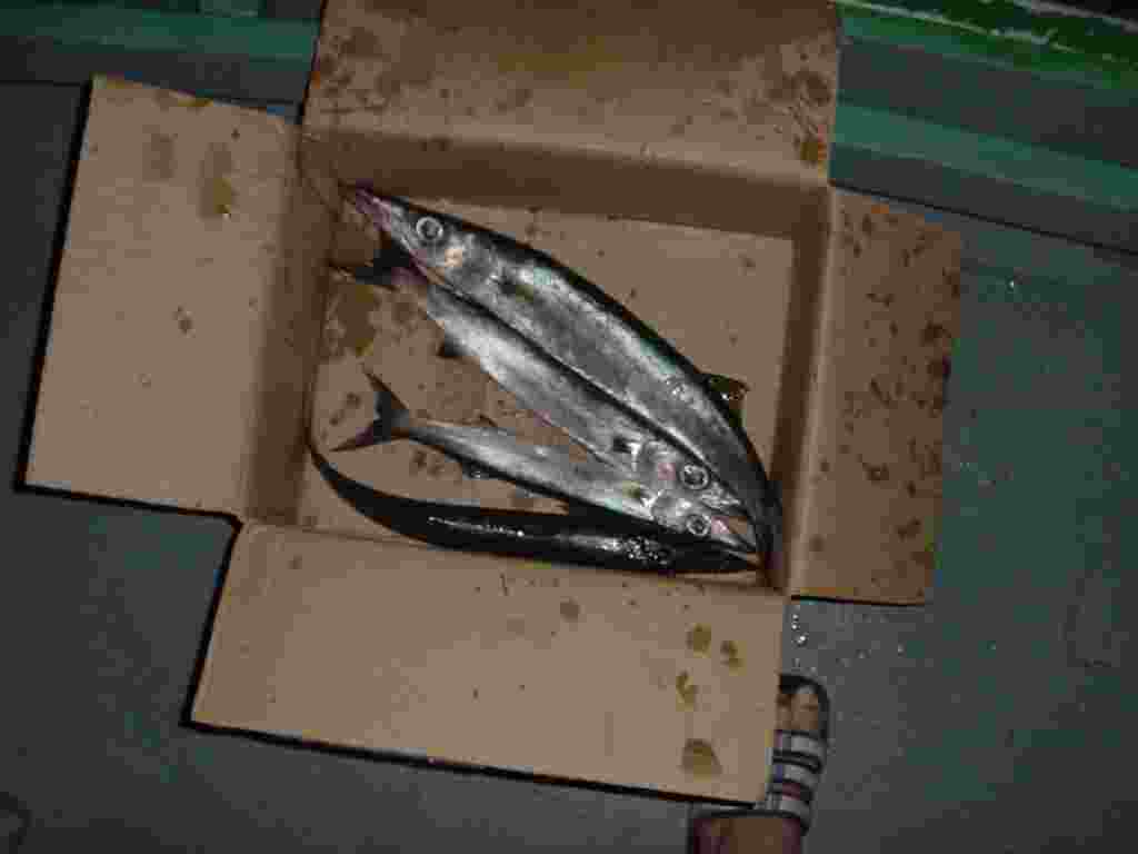 しかし、あきらめて、モルディブ人にやってもらうと、彼らは、結構簡単に魚をヒットさせるのだ。魚がいないわけではない。我々の腕が悪いのだ。彼らにお願いして釣り上げた人の釣果が左のダンボールに入っている魚たちだ。
