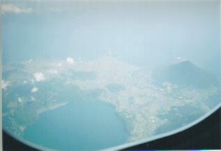 さて、1時間お休みタイム、と思ったのですが、離陸してふと窓から下を見ると島が見える!