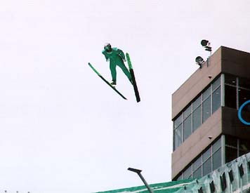 | 前日までノーマルヒルでのジャンプを 飛ばれていたそうですが、この日ラージヒルに 切り換えて飛ばれたようです。 特に問題もなく、ラージヒルを 調子よく飛ばれていました。 |
