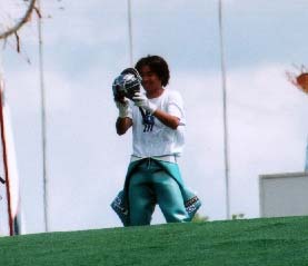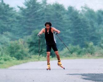 | 某所にてローラースキーの トレーニング中。 上の笑顔の写真とは打って変わって 真剣な表情ですね。 でも、どちらもいい表情です!! |