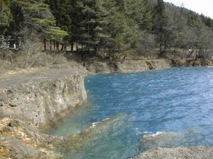 御座の石(田沢湖岸、事故ったところ・・・)の湖面(1999年4月17日撮影)