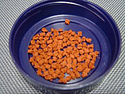 海藻、ビタミン、ミネラルが主原料の1匹1個サイズの小さなエサ 食いは良い。 | | |