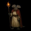 南方暗黒大陸の中央部に在るという爬虫人帝国の司祭。非常に珍しい双頭の爬虫人であり、その知性はずば抜けて高い。恐るべきことに、双頭でそれぞれ同時に二つの呪文を詠唱することができる。