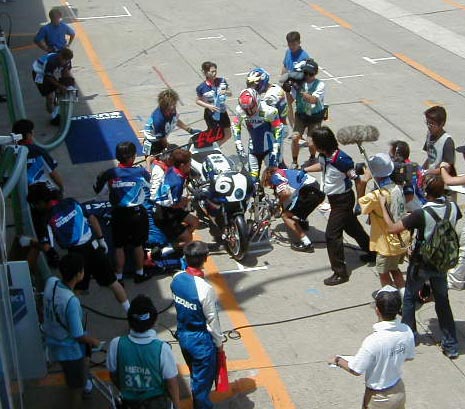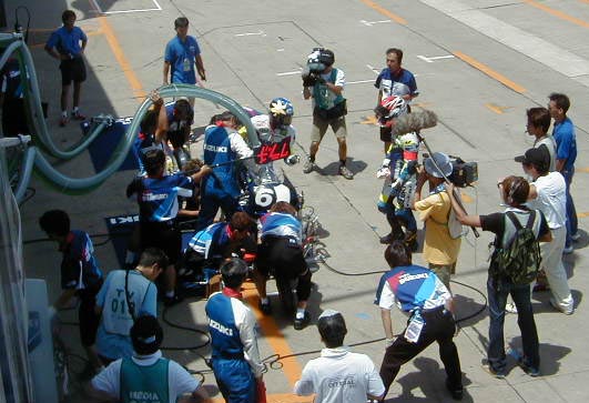 ライダーの交代で慌ただしいピット