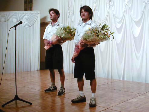 ホンダのプライベーターで最高位8位の加藤 大治郎/玉田 誠に花束が渡されました。