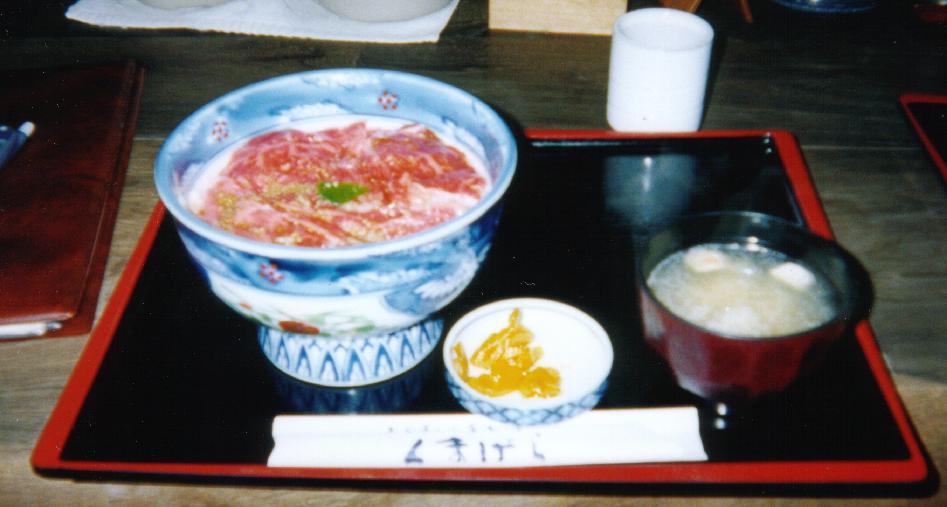 初日の昼食 くまげらの「和牛刺身丼」(富良野駅前にて)