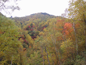 下り道の中腹部からの紅葉が、見頃だった。