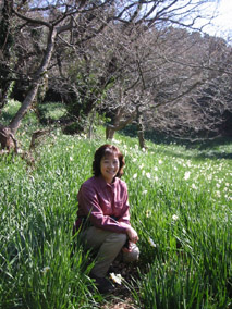 道路や畑の脇や学校の敷地の周りにも水仙がたくさん植えられていた。登り始めてすぐの斜面には群落があり、ちょうど見頃を迎えていた。
