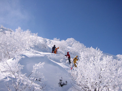 この日は、渋ノ湯から賽の河原を経由して高見石小屋までの行程。賽の河原は、雪が増えて12月の時よりも、歩きやすくなっていた。