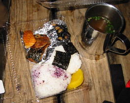 お弁当は、こんな感じ。朝用・昼用おにぎりとおかずが変えてある。