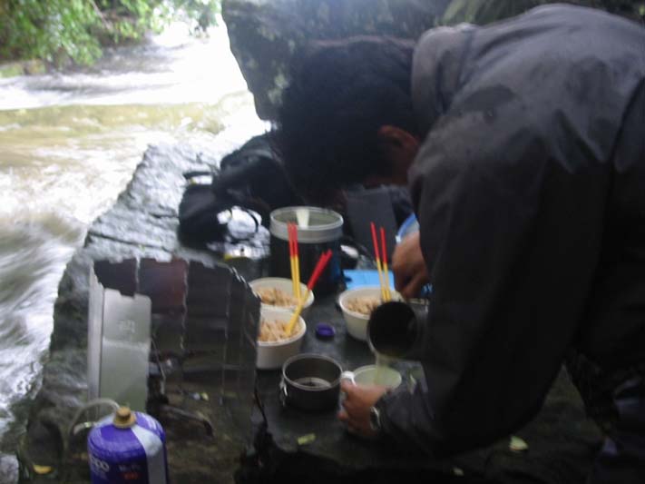 滝の上で、ランチタイム。