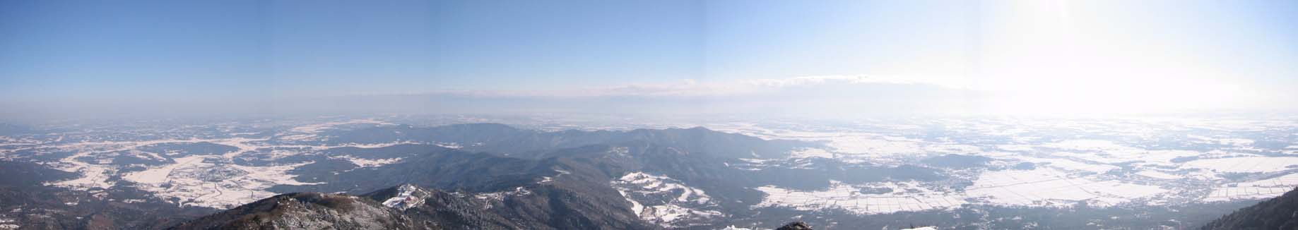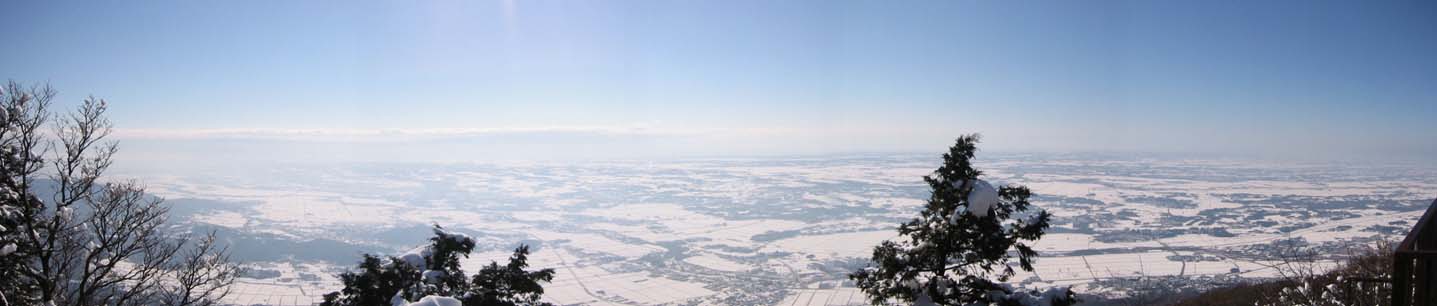 筑波山から見る関東平野はどこまでたいら。この日は、雪国のような景色が見られました。