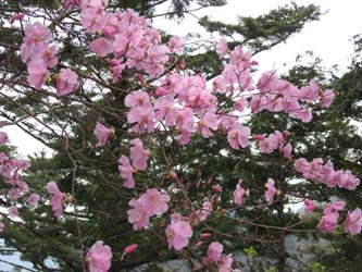ピンク色がかわいいアケボノツツジ満開の道を行く