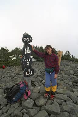 権現小屋から青年小屋へと下り、そのあと、このコース最後の編笠山への登りとなった。巨石累々とした斜面を登り、樹林の斜面を登って頂上着。