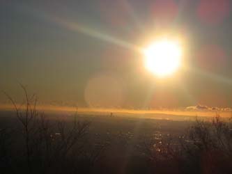 大混雑で、日の出方向の位置取りがあまり良くなく、木の間からの初日の出となりました。