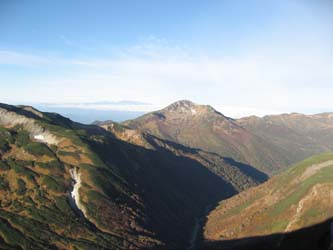 黒部五郎小舎から登り返したところから、黒部五郎岳。