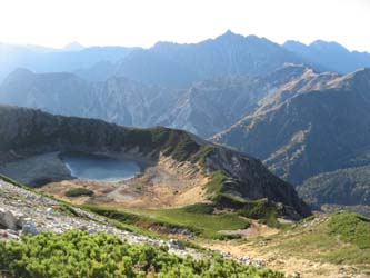 紅葉が池に映えていました。槍ヶ岳もすっきり。