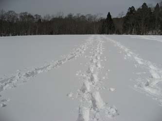 玉原湿原にスノーシューの足跡をつけて