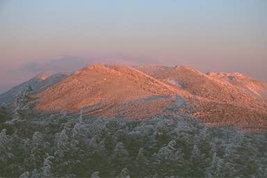 太陽が山の端から出る前が一番美しい。雪の山々が、刻々と色を変えながら朝焼けに赤く染まっていく。