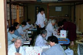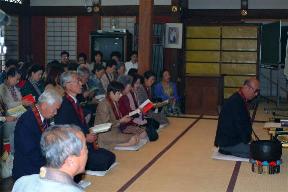 壮年会調声のもと婦人会、こぶし会も一緒に正信偈を巡讃