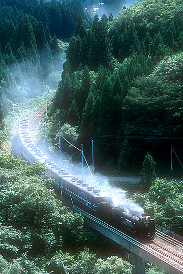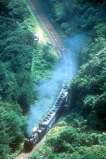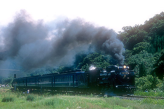| 2002/6/29 | 下と同一ポイント。D51のすぐ下あたりに踏切を跨ぐ電線が走っています。 |