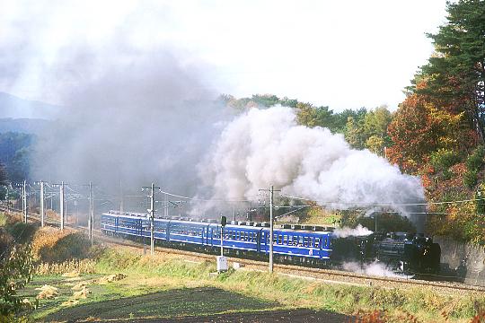 | 1996/10/26 | 当時のRM誌のガイドで紹介された御代田近くの跨線橋付近です。煙の具合がイマイチでした。 |