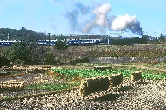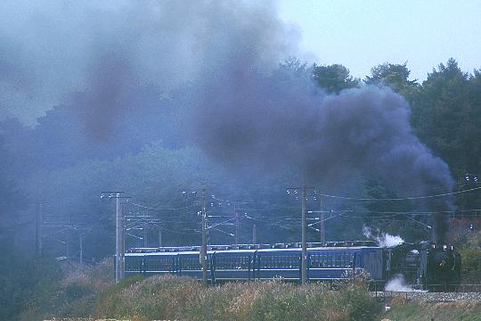 | 1996/10/27 | 前の写真と同一ポイント。こちらが本命カットだったのに、カマに煙の影が落ち真っ黒に・・・(TT)。何とも珍しい失敗作。 |